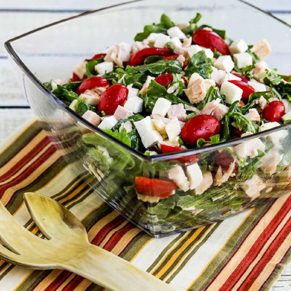 Arugula Chicken Salad is low in net carbs, and this main-dish salad would be great for low-carb or Keto diets. If you use low-fat skim milk Mozzarella, everything in this salad is a great choice for any phase of the original South Beach Diet. Low-carb eating plans would prefer full-fat cheese.