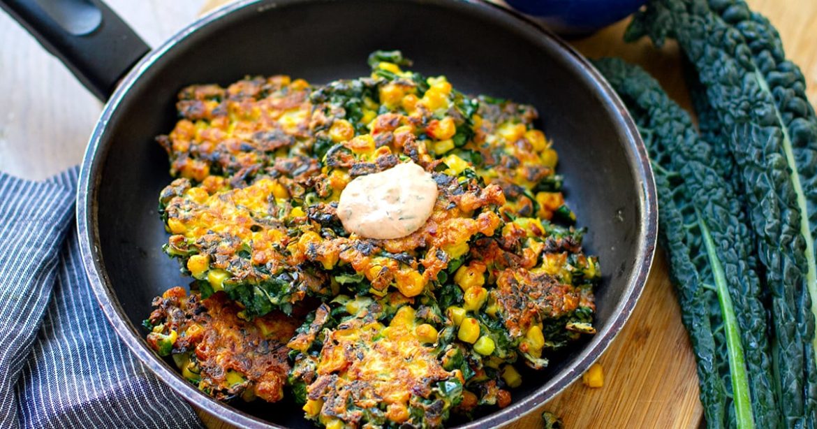 Keywords: Sweet Corn, Cavolo Nero, Kale, Fritters, Brunch, Breakast, Lunch, Vegetarian