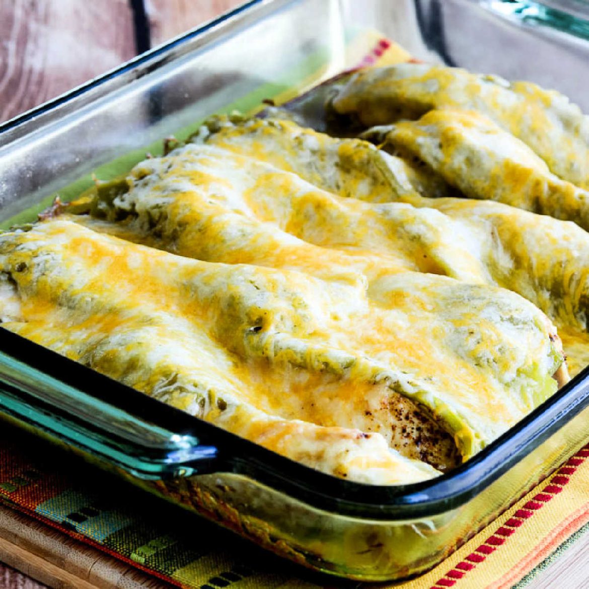 Chicken with Green Chiles and Cheese uses the canned roasted whole chiles that I love to use to replace tortillas in Mexican dishes. And this delicious dish with chicken layered with green chiles and cheese has amazing flavor with only 3 net carbs.