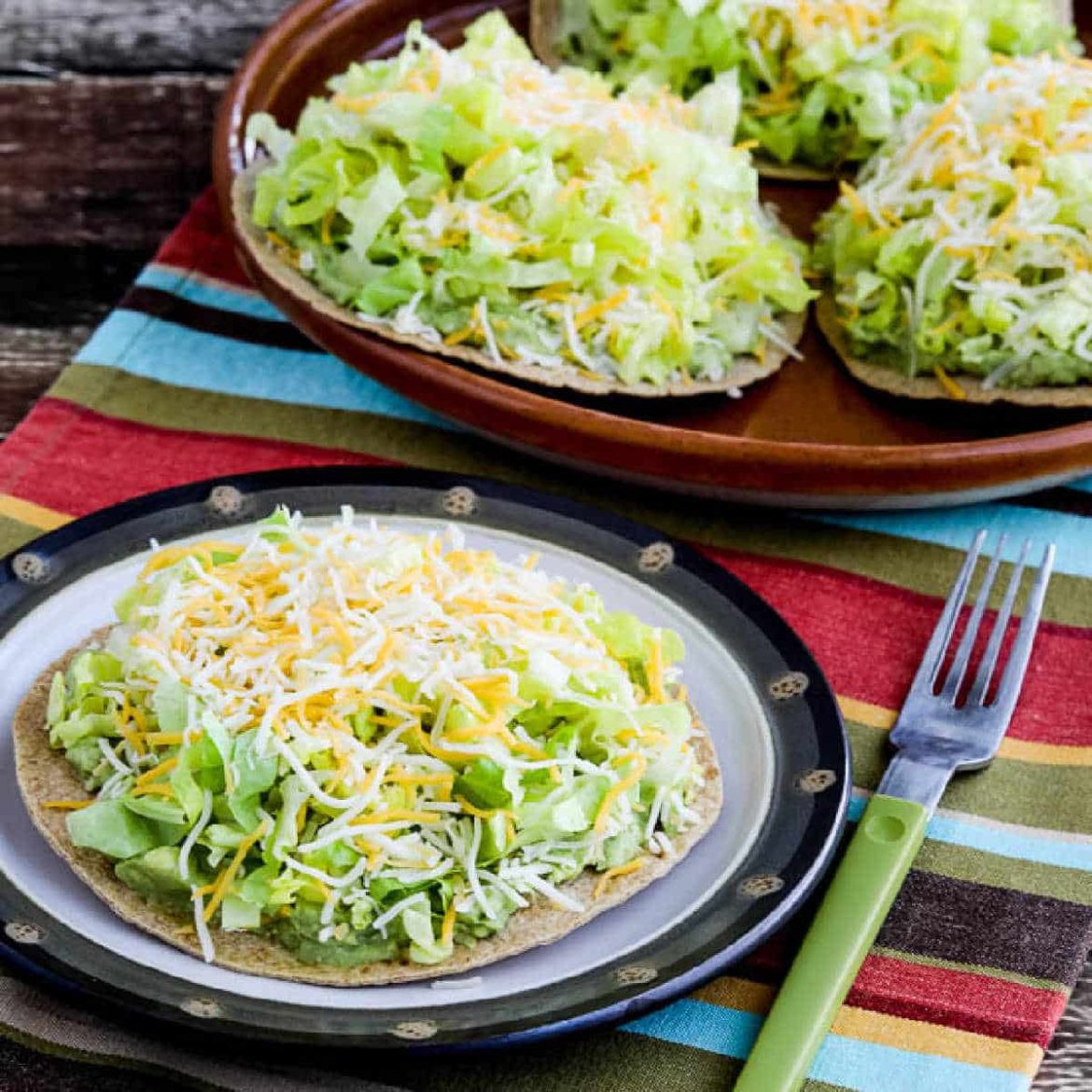 Easy Low-Carb Guacamole Tostadas are one of my favorite things to make with low-carb tortillas, or use regular tortillas if you don’t care about the carbs! Either way, this is easy and delicious for a meatless meal.