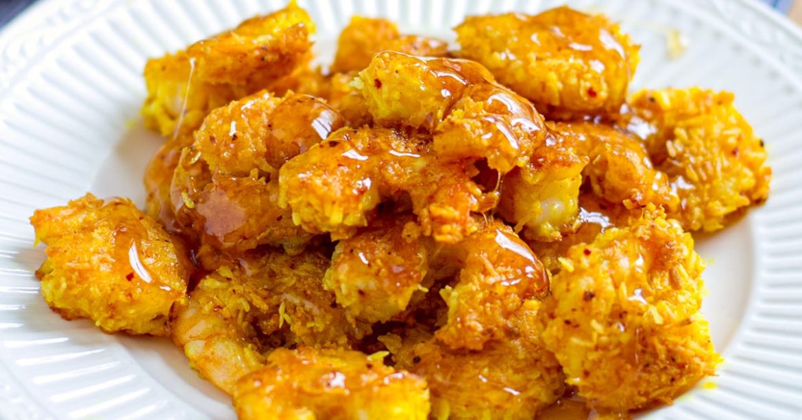 Looking for a healthy Chinese takeout alternative? Try these golden coconut shrimp (prawns) with a zesty honey lemon glaze. They’re light, crispy, and full of flavour! Kids and grownups love this dish.