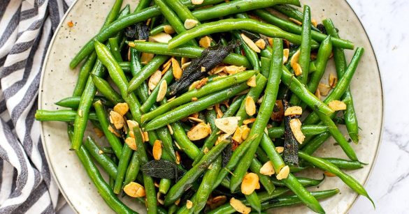I make these green beans almondine a lot, especially around the holidays, and it’s one of those side dishes that gets a “wow” at the table — even from the people who claim they don’t like green beans.