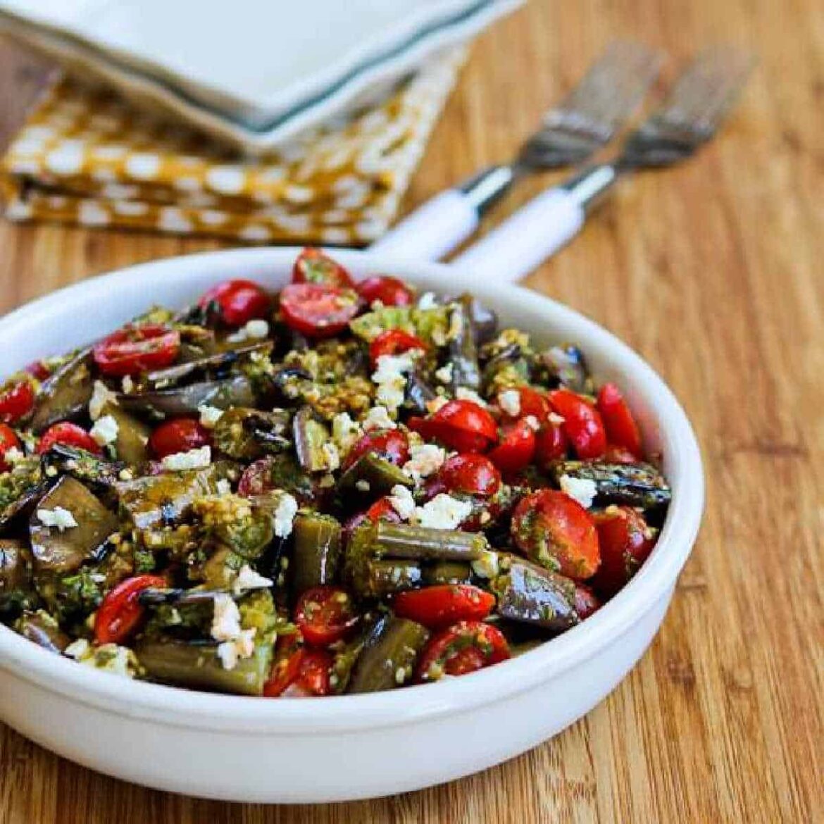 Everything in this Grilled Eggplant Salad is approved for all-phases of the original South Beach Diet or any other type of low-glycemic eating plan, and this salad is also relatively low in carbs but probably too high in carbs for Keto.