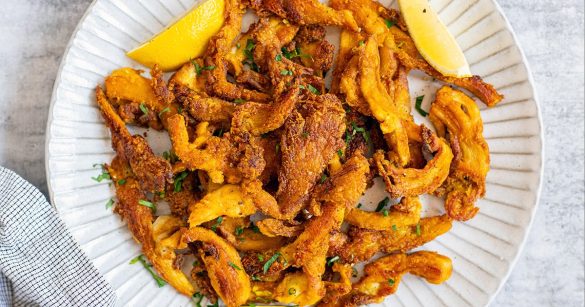 Oyster mushrooms are naturally vegan (minus the cheese) and full of umami, making them a great plant-based alternative to crispy chicken.