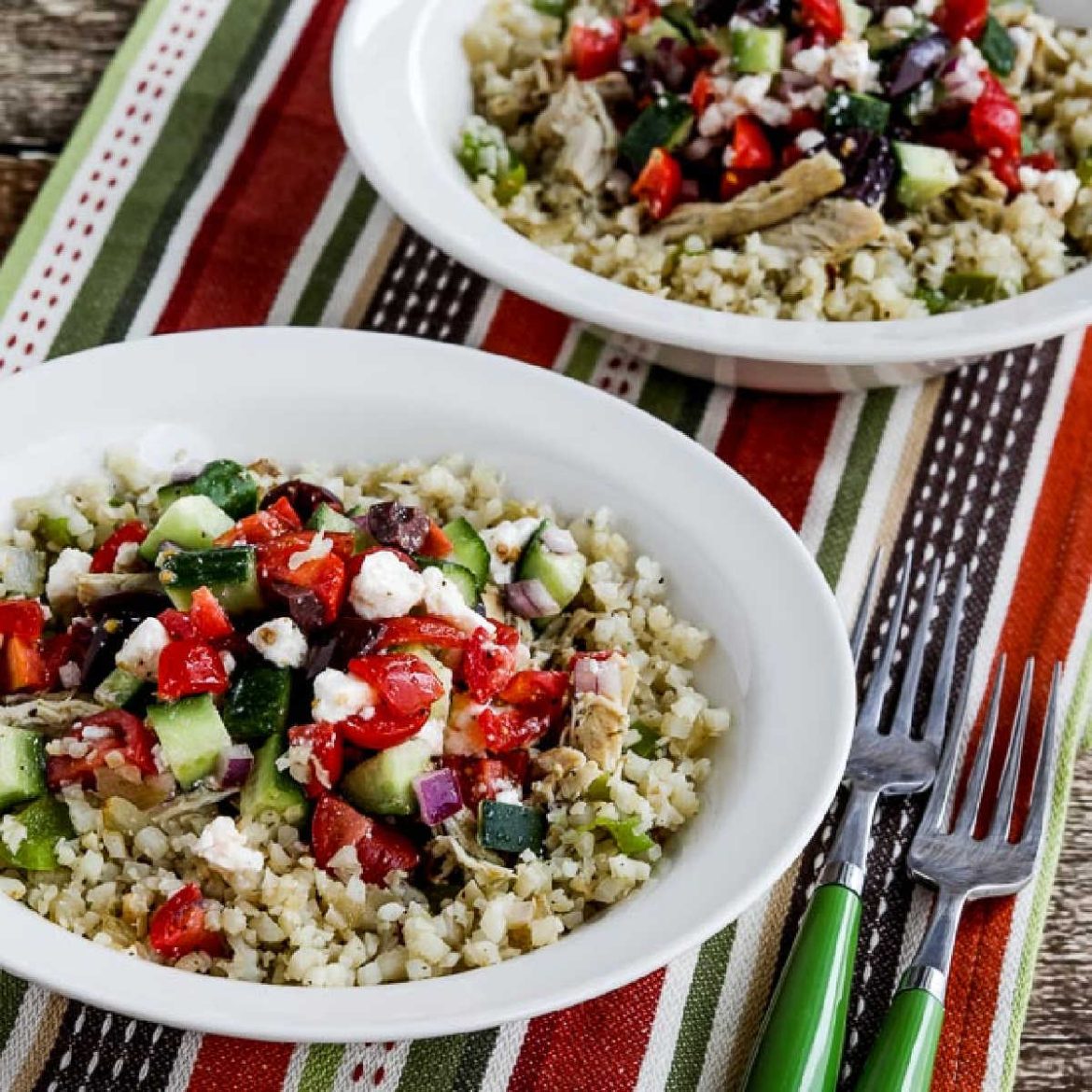 The Greek Chicken Bowls are a great Instant Pot dinner for any low-carb diet, including Keto and any phase of the original South Beach Diet.