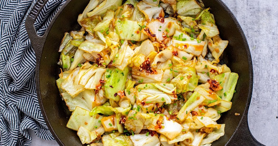 Quick Japanese-style cabbage sautéed with soy sauce, mirin, garlic and sesame oil. An easy umami-packed side for Asian-inspired meals. Find step-by-step photos and more recipe tips above.