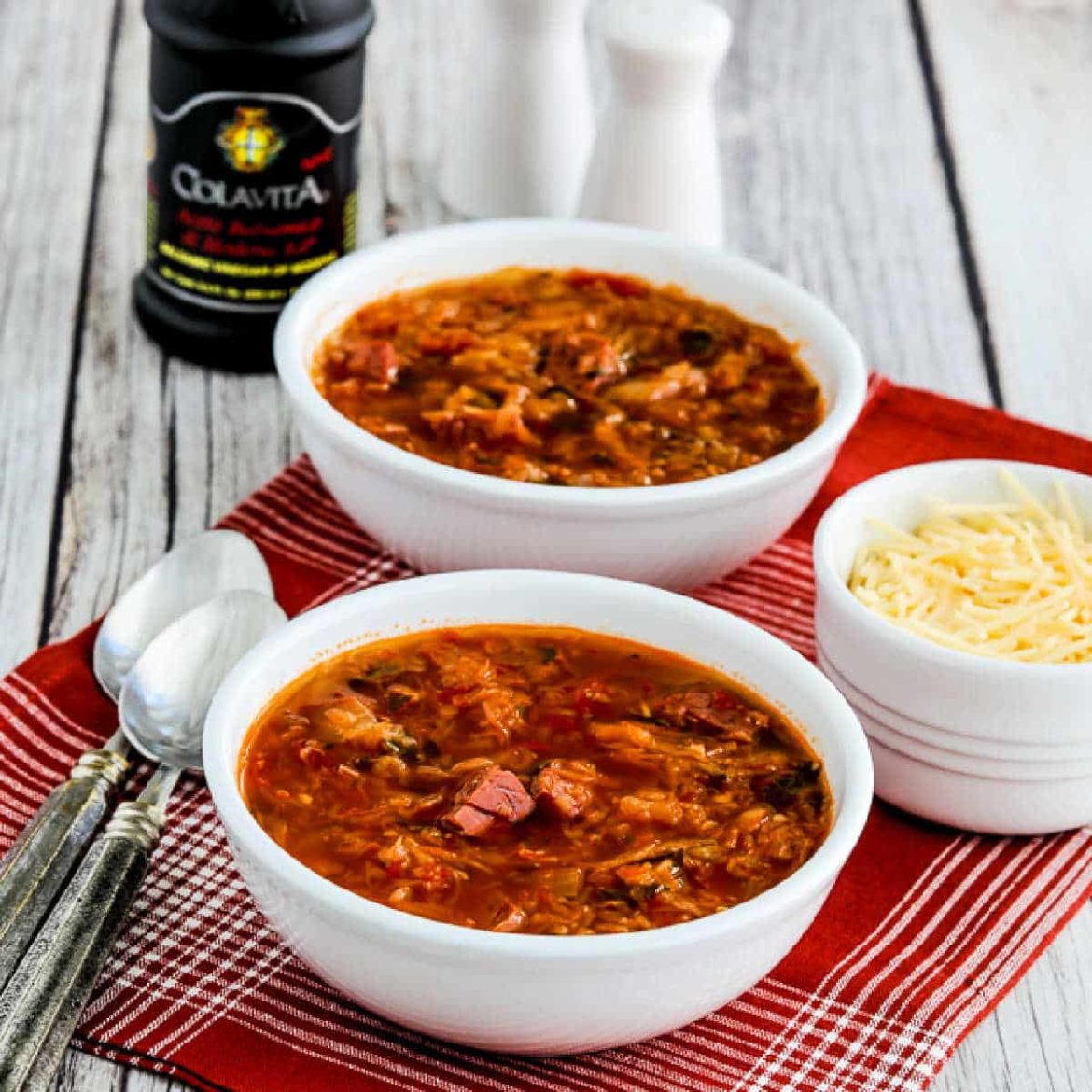 You can make this soup with any balsamic vinegar you buy at the grocery store and it will be just fine. But if you really want to boost the flavor (without buying a super pricey bottle of balsamic vinegar at an import store) I’ve been thrilled with this Colavita Aged Balsamic Vinegar of Modena (affiliate link) that I buy at Amazon.com. It’s sweeter and thicker than regular balsamic vinegar, and you only need a tiny amount when you use it, so the bottle will last a long time!