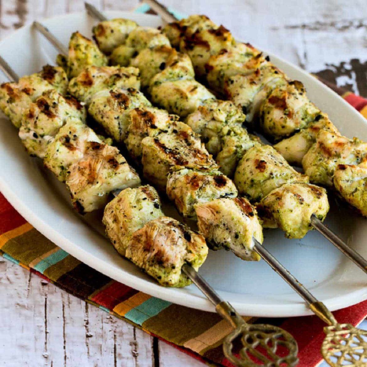Lemon Pesto Chicken Kabobs are low in carbs, delicious, and easy to make, and everyone who likes lemon and pesto will love this recipe! And you can use the same lemon pesto chicken marinade on whole chicken breasts too if you prefer.