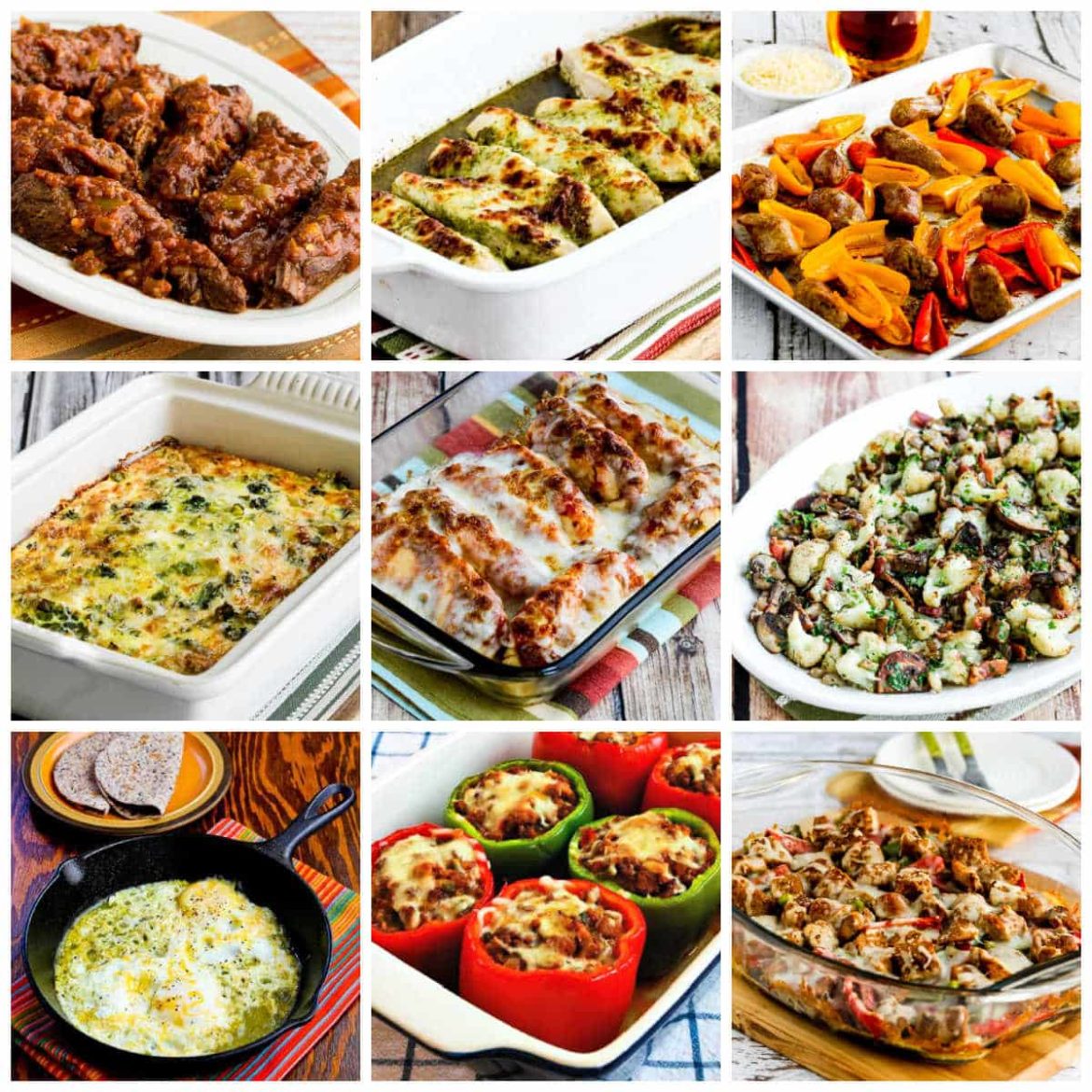 Sausage, Peppers, and Mushrooms Low-Carb Cheesy Bake is a ridiculously easy recipe that’s also super popular on the blog, and anyone who likes sausage and peppers will like this cheesy version.