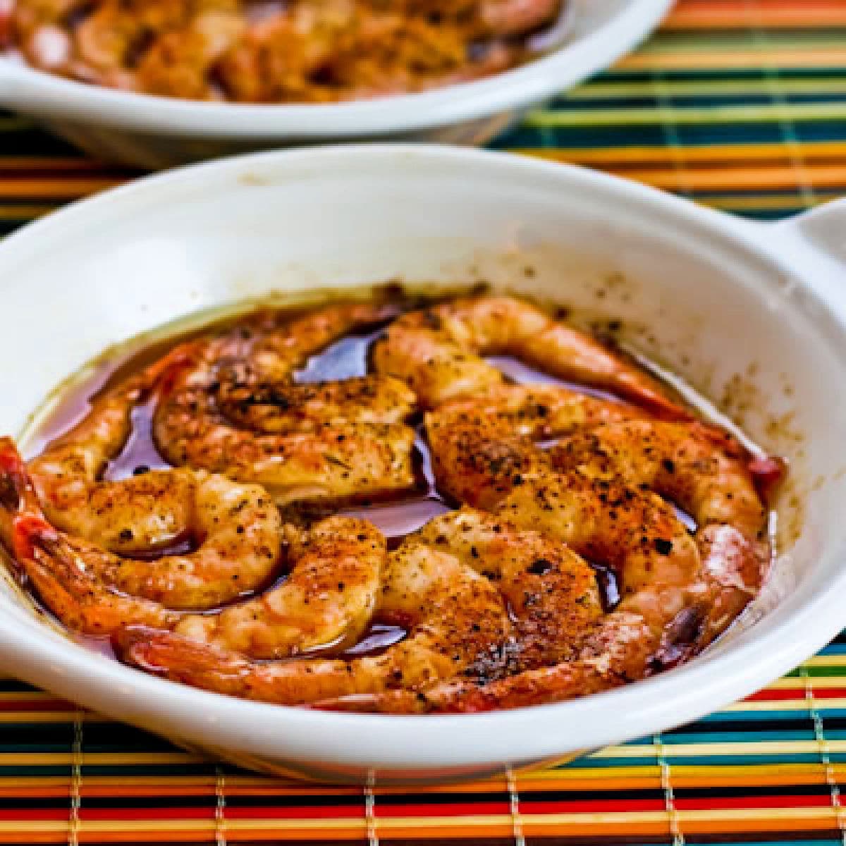 - The bottom photo shows how the individual dishes of shrimp looked once they were doused with oil or butter and the seasonings were added. See complete recipe below for more information about that.