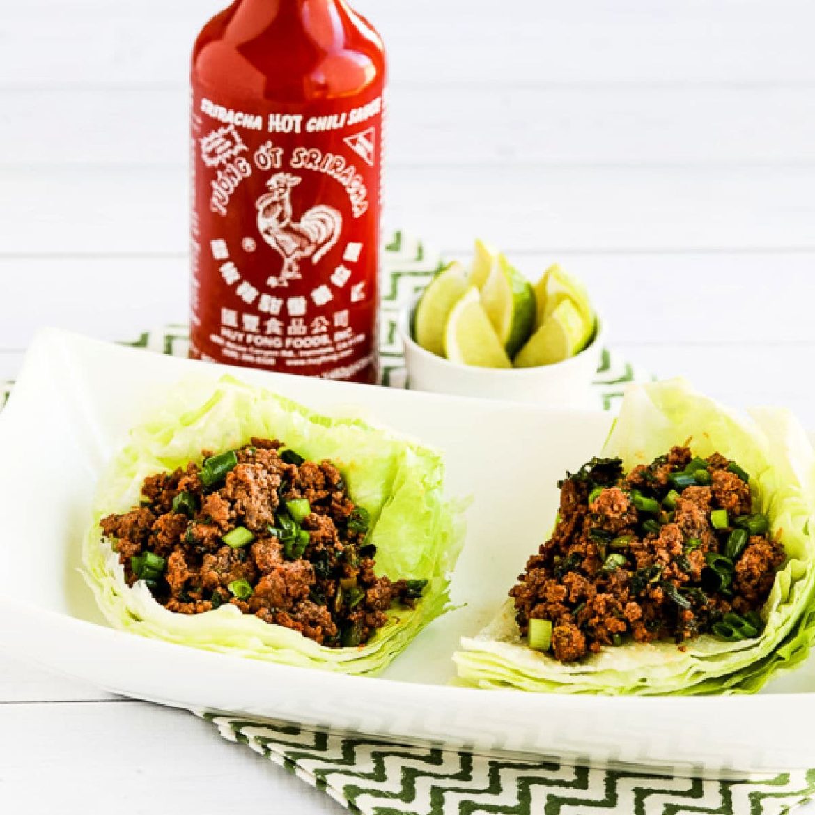 These Sriracha Beef Lettuce Wraps are a quick and easy low-carb dinner that I find myself making over and over. And there must be hundreds of beef lettuce wraps in the world, but this version has so many flavor-boosting ingredients that go perfectly with beef and Sriracha Sauce, like fish sauce, lime, green onion, and cilantro, and if you like Thai flavors at all, you’re going to love this recipe.