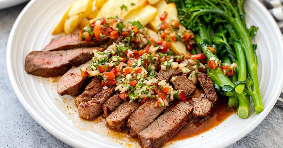 An easy steak and potatoes dinner with bold chimichurri salsa, roasted spuds, and garlicky broccolini. Packed with protein, fibre, and serious flavor. Find step-by-step photos and more recipe tips above.