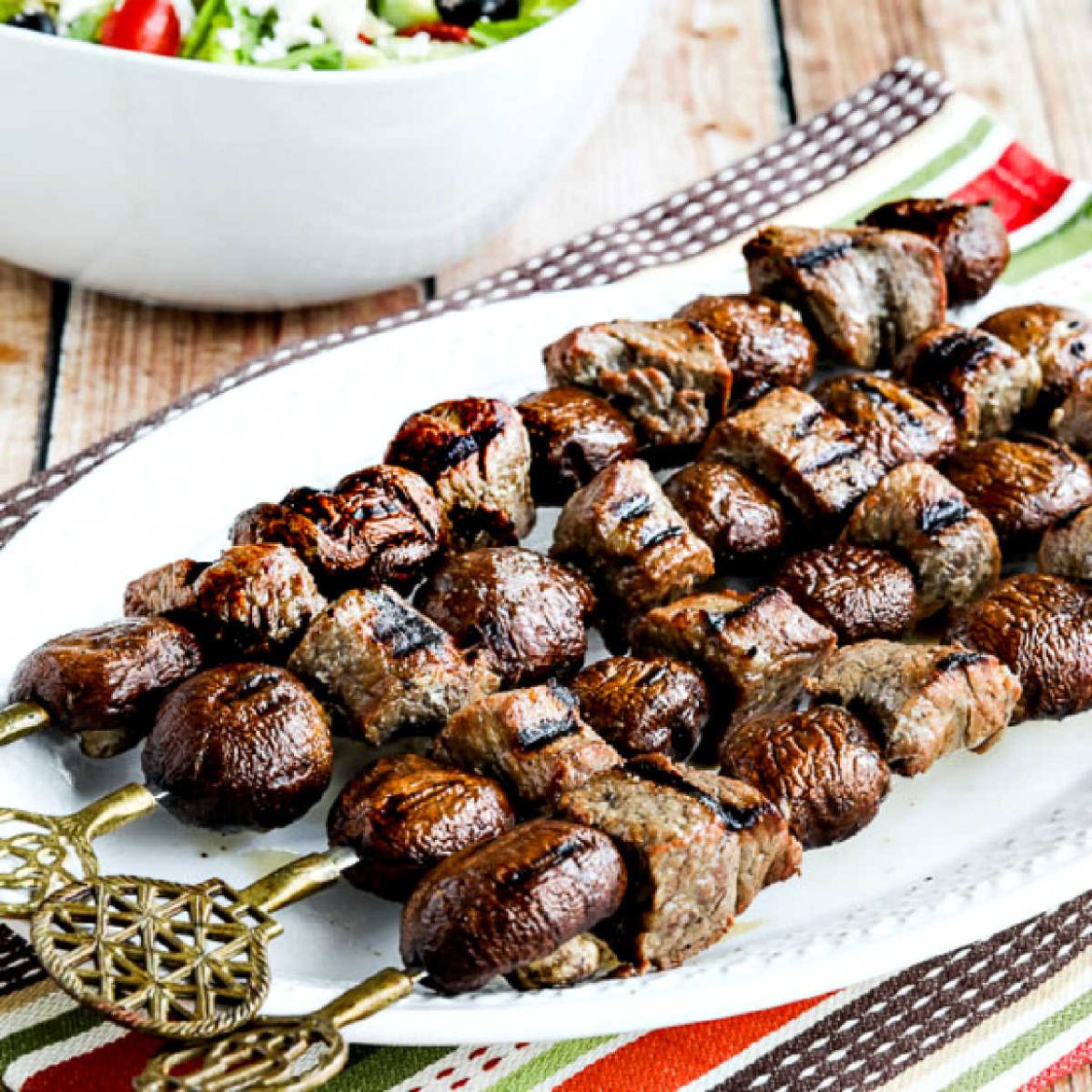 Steak Kabobs with Mushrooms are a great main dish for low-carb, Keto, and low-glycemic eating plans, and for the original South Beach Diet phase one. The South Beach Diet would recommend trimming the fat from the steak and other low-carb plans might prefer keeping a bit more fat.