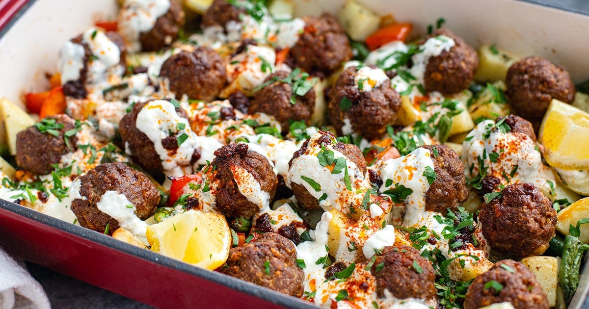 How To Make Turkish Baked Meatballs & Potatoes With Garlic Yogurt