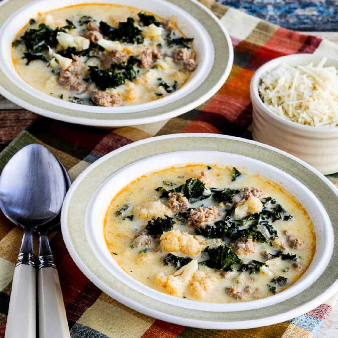 This delicious version of Zuppa Toscano that switched out the potatoes for cauliflower has only about 6 net carbs per serving!
